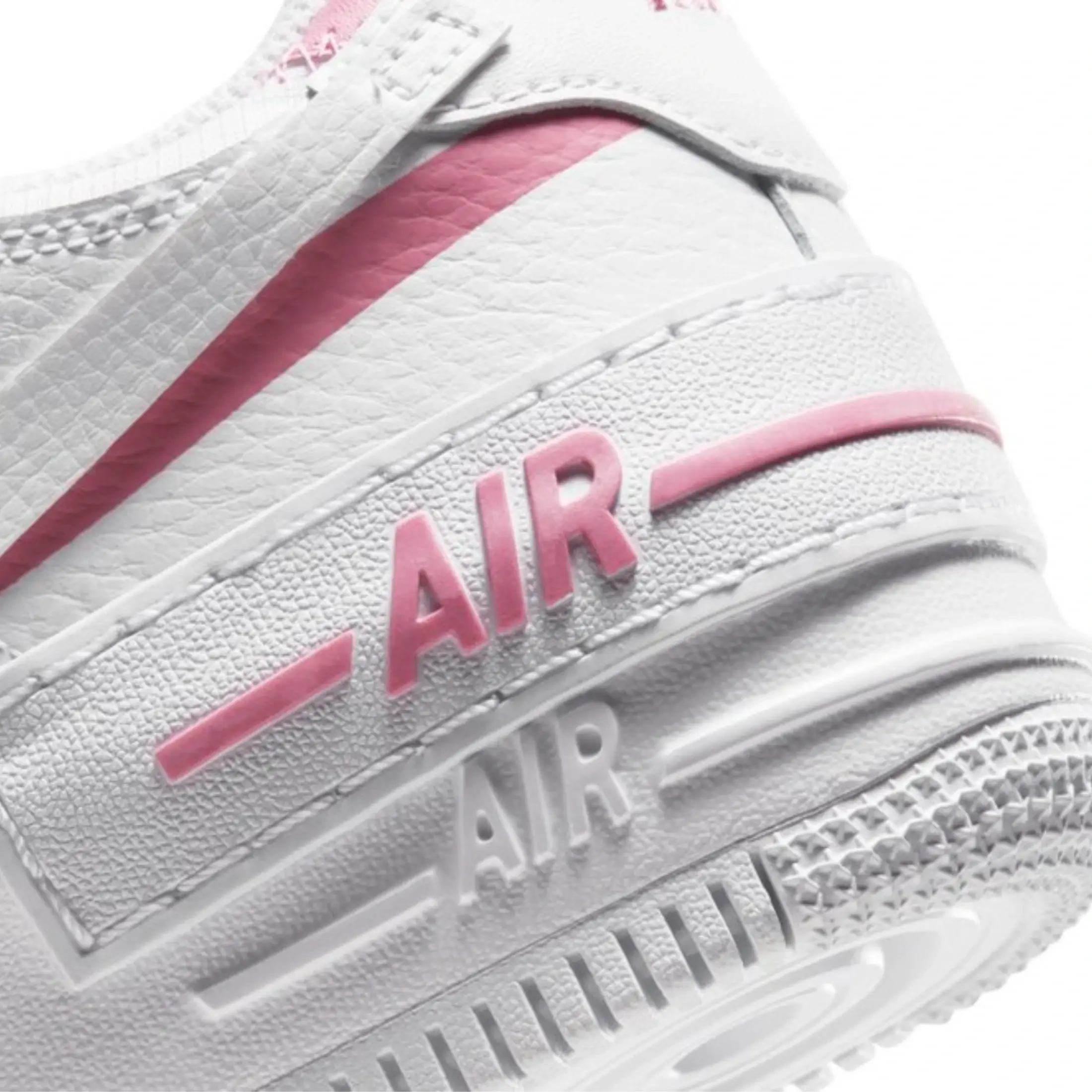 Su parte superior de piel lisa en color blanco sirve de base para detalles en tonos rosados suaves, presentes en el swoosh, los ojales y el distintivo «AIR» en la mediasuela. Todo ello asentado sobre una suela ligeramente sobredimensionada, que refuerza su carácter moderno y desenfadado.